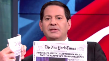 As proof of his assertion, Halperin held up the day's edition of the newspaper with the front-page headline of “Democrats, Students and Foreign Allies Face the Reality of a Trump Presidency.” “If Donald Trump had lost,” he asked, “do you think the press would have been so concerned about his supporters in their disappointment?”