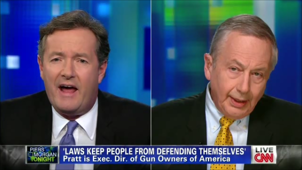 MORGAN: What you've just said, Mr. Pratt, was an absolute lie. The gun murder rate in countries like Britain or Germany or Australia, who've all suffered massacres many years ago, similar nature, have -- there are 35 people killed a year. Your country has 12,000.