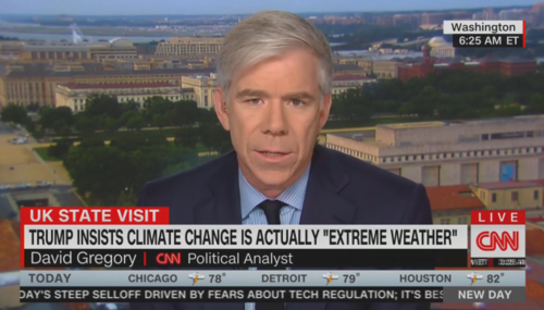 On CNN, David Gregory says that despite his lengthy sit-down with Prince Charles, and talks with Al Gore and others, President Trump is not convinced about climate change and the "consensus" view in favor of a carbon tax.