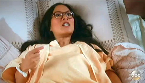 ABC’s American Housewife revisited their touching storyline where main character Katie's (Katy Mixon) friend Doris (Ali Wong) was angry over being pregnant with her fourth “creature,” whom she compared to parasitic lice. In Wednesday's episode, "Blue Christmas," Doris is in the hospital ready to give birth on Christmas Day - which also makes her angry and causes her to use new terms of endearment…