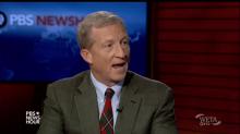 Liberal climate change activist and political donor Tom Steyer likened himself to David, fighting against the "Goliath" of conservative political donors, in a May 26 interview with PBS NewsHour. He lamented, "when you look at the relatie dollars, it really is a David and Goliath situation, and we're very definitely the small shepherd boy with five rocks and a sling."
