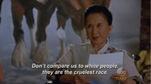 ABC's Fresh Off the Boat is a sitcom about a Taiwanese family grateful to be making the most of the opportunity American life has to offer. At least the mom and dad appreciate the U.S., the grandmother hasn't bothered to learn English and is apparently racist. In this scene, Grandma Huang is in an argument with her daughter-in-law Jessica about their relationship and money that Jessica wants to borrow to invest in a house. When Jessica tries to argue that she has been generously taking care of her mother-in-law while their white neighbor Honey doesn't even know where her own mother is, Grandma makes the valid point that it is her obligation, but then lets loose with a racist!