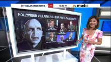 On the June 10 edition of MSNBC Live, Thomas Roberts chose to highlight a non-scientific poll that showed several Republican candidates for president polling behind Voldemort from Harry Potter. MSNBC Live regular Frances Rivera noted that the Terminator, the shark from Jaws, and Lord Voldemort all had higher favorability ratings than many of the major Republican players.