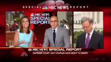 On June 26, following the Supreme Court’s decision to grant a constitutional right to marry for gay couples, NBC News broke in to cheer on the ruling. Pete Williams labeled it a historic ruling and fought back tears while reporting the 5-4 decision to Savannah Guthrie.