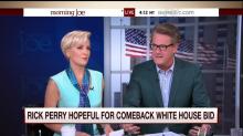 Reacting to Rick Perry’s announcement that he is running for president, MSNBC's Mika Brzezinski cheered the former Texas governor’s populist message. After playing a clip of Perry saying the “American people see a rigged game where the insiders get rich [and] the middle class pays the tab,” on Friday's Morning Joe Brzezinski couldn’t contain her excitement. She shouted: “It’s Elizabeth! It’s Elizabeth! It’s Elizabeth!”