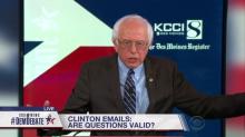 After being pushed by The Des Moines Register’s Kathie Obradovich during Saturday’s Democratic debate about his flip-flopping on Hillary Clinton’s e-mail scandal, socialist Bernie Sanders denied the idea that he had backtracked from his “damn e-mails” comment in the October 13 debate. Instead, Sanders attacked the notion as “media stuff” and emphasized that he’s “still sick and tired of Hillary Clinton's e-mails.”