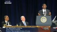 Newly-announced presidential candidate and neurosurgeon Dr. Ben Carson broke onto the national scene at a National Prayer Breakfast in 2013 when he, while sharing the same stage as the President, had the courage to rail against the deficit, political correctness, and the tax system while also standing up for religious values and advocating health savings accounts as an alternative to Obamacare.