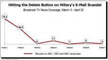 From the morning of March 27 through the evening of March 30, the Big Three (ABC, CBS, NBC) networks spent only 10 minutes and 15 seconds to the admission by Clinton’s own attorney that her State Department e-mails were wiped from the server that had been subpoenaed by Congress, but they devoted a whopping 35 minutes to coverage of the Indiana religious freedom law.