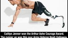 Perhaps you've seen it -- the photo of Noah Galloway, a double-amputee veteran of the Iraq war and crowd-pleasing contestant on Dancing With the Stars, with this caption -- "Caitlyn Jenner won the Arthur Ashe Courage Award. The runner up was this guy: Army Veteran Noah Galloway, who lost an arm and leg to a roadside bomb in Iraq, and now competes in Crossfit events, runs marathons, and competed in the 58-hour Death Race."