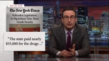 On his HBO program Sunday night, former Daily Show correspondent John Oliver mocked the efforts of Nebraska Governor Pete Ricketts to acquire the drugs needed for the lethal-injection execution of an inmate after the solidly Republican state legislature voted to end capital punishment in Nebraska. The new law won't take effect for three months.
