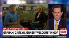 Erin Burnett interviewed Republican presidential hopeful Rick Santorum in a taped sit-down chat earlier today. But rather than sticking purely to substantial issues, the CNN anchor also posed two rather trivial queries, one about a hot microphone comment Sen. Mark Kirk (R-Ill.) made about fellow Sen. Lindsey Graham (R-S.C.) being a "bro without a ho," and another regarding if Rick Santorum approves of Bruce Jenner's newfound lifestyle as Caitlyn, a transgendered woman.