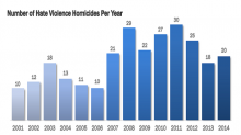 The NCAVP study claimed 12 people were killed in hate crimes in 2014 and 13 had been killed so far in 2015. TIME cited the same study Aug.17, calling the murder rate “historic,” adding two more people killed to make that number 15.