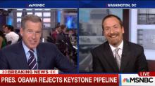 In a humorous exchange during MSNBC’s 12 p.m. ET hour coverage of President Obama rejecting the Keystone Pipeline, Meet the Press moderator Chuck Todd and breaking news anchor Brian Williams mocked the idea that the long-expected decision was in any way a major new development.