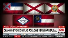 CNN's Chris Cuomo zeroed in on five state flags that have supposed "strong Confederate references" on Monday's New Day. Cuomo cited unnamed experts on flags and symbols who claim that the state flags of Alabama, Arkansas, Florida, and Tennessee – along with that of Mississippi and Georgia (which incorporate two different Confederate flags) have such "references." He later wondered, "Do all of these flags have to go? Does each deserve separate consideration? Is there a 'too far' involved with something like this?"