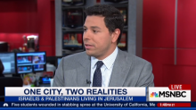 On Wednesday’s MSNBC Live with Thomas Roberts, Ayman Mohyeldin presented a video of his interviews with two college kids from Jerusalem, one an Israeli, the other a Palestinian. After playing the video, Thomas Roberts and Mohyeldin continued to discuss the video. Mohyeldin lectured, “To try to understand this current cycle of violence, one of the reasons Palestinians will always say is the humiliation and frustration that the young people are experiencing.”
