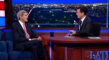On The Late Show with Stephen Colbert on Thursday night, Secretary of State John Kerry came on to explain how wonderful the Iran deal is. Colbert began by saying “Congratulations for the Iran deal,” as the New York crowd cheered and clapped. After that, Colbert did present Kerry with what opponents might say, bringing up the comparison of Neville Chamberlain's "Peace in Our Time" and asked how the Iran Deal wasn’t a capitulation to an adversary. Kerry would eventually invoke the imagery of Vietnam to explain why he has fought so hard to complete the Iran Deal.
