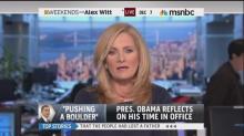 MSNBC’s Alex Witt just can’t get enough of President Obama. On Saturday’s Weekends with Alex Witt, the host latched onto the president’s comment, made during his interview with Chris Matthews last Thursday, that a president’s job is to “push the boulder up the hill a little bit before somebody else pushes it up a little further.”