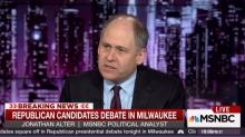 Long-time liberal journalist Jonathan Alter on Tuesday declared himself an arbiter of conservatism and that all the Republican candidates at the presidential debate are failing his test. The man who has assailed “vile” conservatives appeared on MSNBC and lectured, “...It's really kind of crazy that we call this a conservative political party. There's nothing conservative about it, big-c conservative, small-c conservative.”