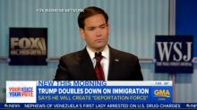 Good Morning America’s Tom Llamas on Thursday whined that Marco Rubio was “dodging our questions” on immigration. Yet, the journalist seemed to forget that the Senator answered questions on that very topic on Wednesday’s GMA. At a campaign event, the journalist pounced and grilled the Republican about Donald Trump: “I tried asking Senator Marco Rubio about Trump's idea, but he dodged our questions.”