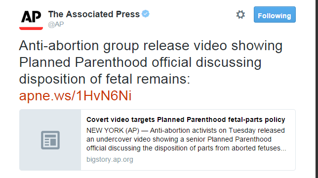 Here's how the newswire's David Crary opened his 9:54 p.m. EDT story about the video released Tuesday by the Center for Medical Progress: