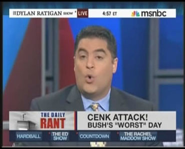 CENK UYGUR, MSNBC contributor: That's always a wonderfully awkward moment. But apparently it really got to Bush. He said in his book, and I quote here, "I faced a lot of criticism as president. I didn't like hearing people claim that I lied about Iraq's weapons of mass destruction or cut taxes to benefit the rich. But the suggestion that I was racist because of the response to Katrina represented an all-time low."