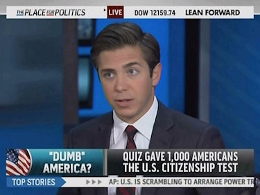 ANDREW ROMANO, Newsweek magazine: Sure. The thing that is really shocking, the topline number, is that 38 percent of people who took the citizenship test failed, which is surprising because these are basic facts about how our civics system works, about U.S. history, the kind of stuff you learn in History 101 in high school. There are a couple of other really shocking facts in there too. The one that really got me is that 29 percent couldn’t name the vice president. Joe Biden, in case anyone’s wondering.