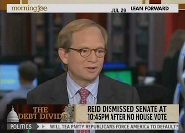 STEVE RATTNER, Morning Joe economic analyst: I wish I knew. You know, the problem with this is it's like a form of economic terrorism. I imagine these Tea Party guys are like strapped with dynamite, standing in the middle of Times Square at rush hour and saying, 'either you do it my way, or we're going to blow you up, ourselves up, and the whole country up with us.' So you tell me how those kinds of standoffs end.