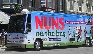 The “Nuns on the Bus” tour made its biggest splash when the luxury bus parked outside the United Methodist Church in Washington, D.C. Lauding them was a leader of the Islamic Society of North America. According to renowned student of terrorism, Steve Emerson, this organization “has sponsored extremists, racists, people who call for Jihad against the United States.” Not that the embrace of totalitarianism is anything foreign to these activists: an 88 year-old nun who took a spin on the bus said she had just gotten back from Cuba, where she expressed her solidarity with the Communists.