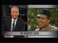 During the "New Rule" segment ending Friday's Real Time with Bill Maher on HBO, host Maher asserted that the painted over "N****head Ranch" rock on Texas Governor Rick Perry's hunting territory is a "metaphor" for the Republican Party, because it is "overtly racist bulls*** thinly painted over." Maher also displayed the words "The Bigotest Loser" while an image of Perry was shown on screen.