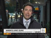 The CBS correspondent noted that Democrats like President Obama have been reluctant to push new gun laws, and took a moment to note complaints from gun control advocates. After a clip of Colin Goddard, a member of the Brady Campaign to Prevent Gun Violence, complaining that there are not enough gun laws, Johnson undermined him by noting the substantial drop in "gun-related homicides" that has coincided with increasing gun ownership: