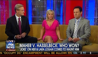 Wednesday's Fox and Friends on FNC gave attention to the recent confrontation between HBO host and comedian Bill Maher and Elisabeth Hasselbeck, the right-leaning co-host of ABC's The View, as Maher appeared as a guest on the ABC show.