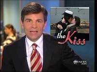The day before the one-year anniversary of the repeal of Don't Ask, Don't Tell, both ABC's World News and the NBC Nightly News on Wednesday took the time to celebrate the first time that a same-sex couple won the U.S. Navy's lottery that allows their welcome home kiss to be featured as the first photographed kiss. ABC substitute anchor George Stephanopoulos read a short item on the subject: