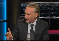On Friday's Real Time with Bill Maher, as he analyzed GOP presidential candidate Mitt Romney's predicament of fending off Rick Santorum on his right, host Maher made his latest racially tinged hit on conservatives as he cracked that only "Kirk Cameron and the Neonazi party" are further to the right than Santorum. (Video below)