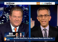 On Friday's The Ed Show on MSNBC, host Ed Schultz and MSNBC political analyst Richard Wolffe - formerly of Newsweek - drew attention to a woman at a shooting range who recently encouraged Rick Santorum to "pretend it's Obama" while the GOP presidential candidate was firing at a target.