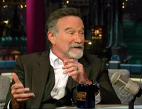 Appearing as a guest on Thursday's The Late Show with David Letterman on CBS, comedian Robin Williams took some shots at GOP presidential candidates Mitt Romney and Newt Gingrich, and ended up bringing up former President Bush, comparing him to a drunk uncle who "took a dump in the jacuzzi."