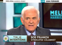 Appearing as a panel member on Sunday's Melissa Harris-Perry show, syndicated columnist and former CNN correspondent Bob Franken obnoxiously accused Mitt Romney of trying to portray the NAACP audience he spoke to as "Willie Hortons" whom he could use to motivate his Republican base. He went on to claim that Rush Limbaugh, whom he called the "grand dragon of radio," represents people who wish to return to Jim Crow segregation in America.