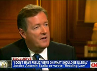 In a pre-recorded interview which ran on Wednesday's Piers Morgan Tonight, CNN's Piers Morgan pressed Supreme Court Justice Antonin Scalia from the left on abortion rights and Scalia's views on Roe versus Wade.