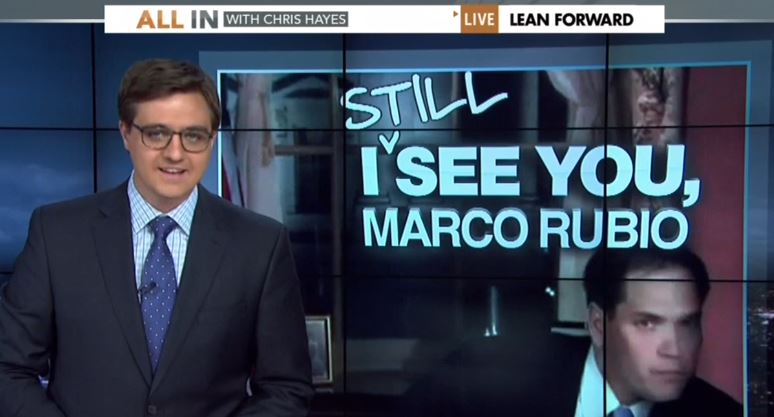 After recounting reports that Rubio had tried to get assistance from New Hampshire Senator Kelly Ayotte on border security, the MSNBC host continued: