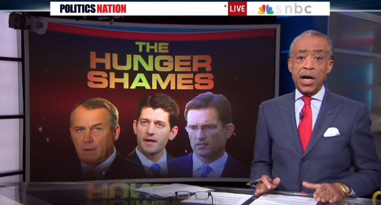 AL SHARPTON: Tonight's lead, the "hunger shames." The GOP has been called scary, narrow-minded, out of touch. And yet again today they lived up to their reputation. Fresh off of voting to roll back women's rights, today Republicans went after benefits for the poor. The House GOP wants to cut $20 billion from the food stamp program. Money that goes to hungry kids, disabled adults, struggling seniors. Why all the massive cuts? Well, just ask Congressman Sessions.