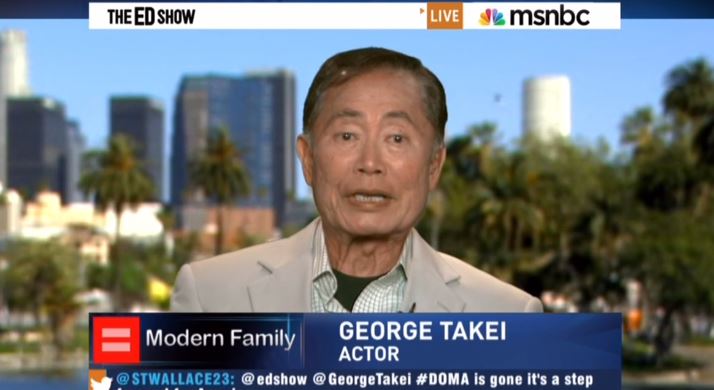 Appearing as a guest on Saturday's The Ed Show on MSNBC, actor George Takei omitted "under God" as he started quoting from the Pledge of Allegiance during a segment in which the gay rights activist and former Star Trek cast member reacted to the Supreme Court ruling that struck down the Defense of Marriage Act.