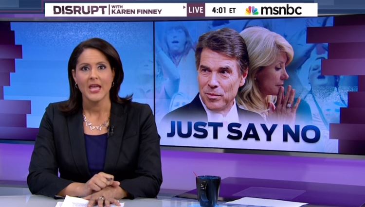 On Sunday's Disrupt show on MSNBC, host Karen Finney wondered by Texas Republicans are "trying to harm the health of women in the state" by passing laws against abortion instead of dealing with other issues, as she hosted Texas Democratic State Senator Leticia van de Putte to discuss fellow State Senator Wendy Davis's filibuster in support of abortion.