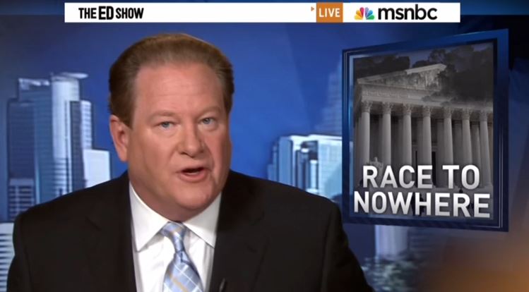 On Saturday's The Ed Show on MSNBC, as host Ed Schultz ranted about the Supreme Court decision on the 1965 Voting Rights Act, he asserted that "keep[ing] a minority down" was one of the few things that "satisfies the conservative movement." Schultz:
