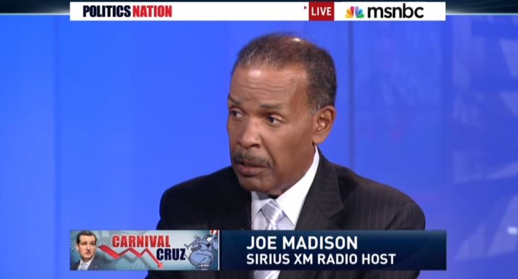 Appearing as a guest on Monday's PoliticsNation on MSNBC, liberal talk radio host Joe Madison declared that Rush Limbaugh is "big, fat, happy with all the health insurance he needs" as he responded to a clip of President Obama complaining that Republicans will not work with him on ObamaCare because they are afraid of a negative reaction from the conservative talk radio host.