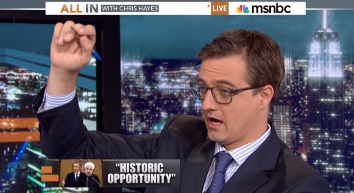 On Tuesday's All In show on MSNBC, host Chris Hayes twice asked California Democratic Rep. Barbara Lee if Israel is an "obstacle" to a "diplomatic settlement between the U.S. and Iran," as the two discussed the possibility of a meeting between President Barack Obama and Iranian President Hassan Rouhani at the United Nations gathering.
