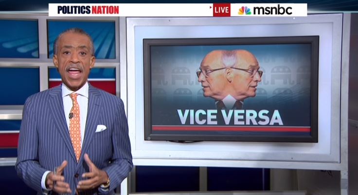 As he mocked the former Vice President, Sharpton managed to bring up the Iraq invasion and repeated the false assertion from the left that Cheney had claimed Iraq should be invaded because an Iraqi agent met with one of the 9/11 hijackers. Sharpton: