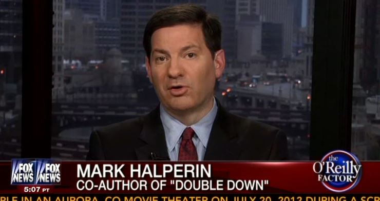 Appearing as a guest on Thursday's The O'Reilly Factor on FNC to promote his book, Double Down: Game Change 2012, Time magazine's Mark Halperin recounted that the media did not "scrutinize" ObamaCare before its passage or during the 2012 presidential election, although he also placed some blame on Republicans for nominating former Governor Mitt Romney who was known for pushing a health care plan in Massachusetts.