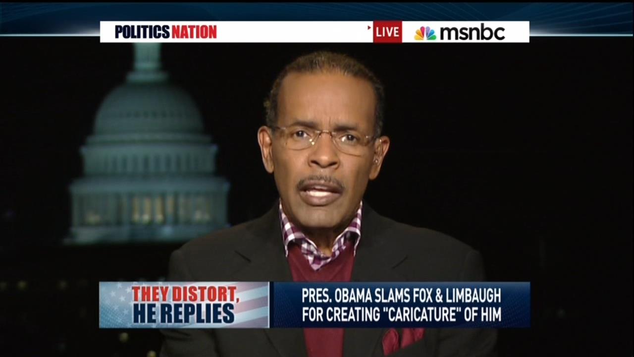 AL SHARPTON: The right wing media continues to distort, distort, distort. But now President Obama has something to say about it. In a new interview, he slams the talkers on the right, saying, quote, "I'm not the caricature that you see on Fox News or Rush Limbaugh." So what does the leader of the Republican Party have to say about that?