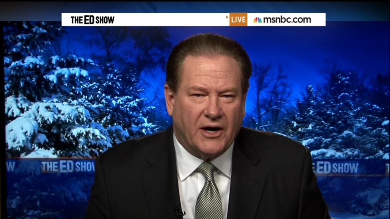 Below is a transcript of the relevant portion of the Friday, April 18, The Ed Show on MSNBC: