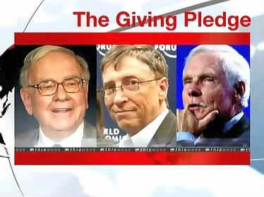 Unmentioned during the pre-taped interviews with Warren Buffett, Bill and Melinda Gates, Ted Turner and Tom Steyer revolving around their participation in “The Giving Pledge” – the promise to give away at least half their wealth: how they are free now to give all the money they want to the federal government.