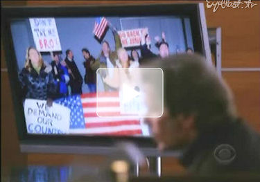 Back to this week’s episode of the drama starring “Julianna Margulies as a wife and mother who boldly assumes full responsibility for her family and re-enters the workforce after her husband's very public sex and political corruption scandal lands him in jail,” in a subsequent courtroom scene, the “McVeigh” character was allowed to defend the Tea Party: “It’s a political movement made up of conservatives and libertarians intended to apply pressure to the government to reduce spending.” The scene continued: